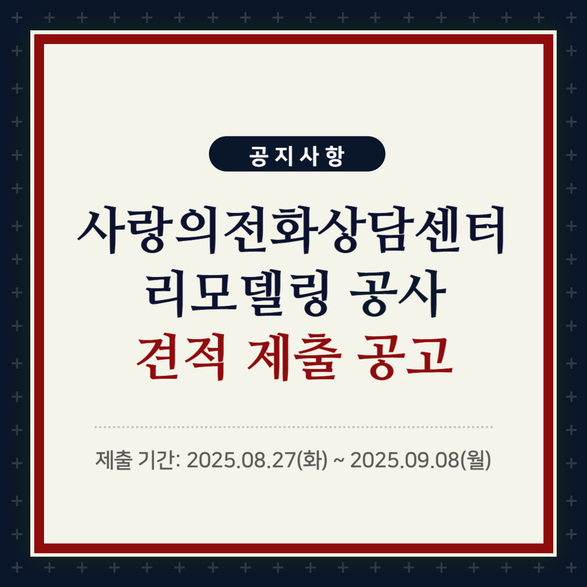 사랑의전화복지재단 상담센터 이전 및 전면 리모델링 공사견적 제출공고
